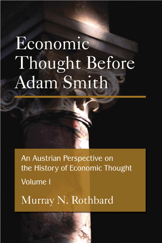 In Economic Thought before Adam Smith, Murray Rothbard contends that laissez-faire liberalism and economic thought itself began with the Catholic scholastics and early Roman and canon law, rather than with Adam Smith. The scholastics, he argues, established and developed the subjective utility and scarcity theory of value, as well as the theory that prices, or the value of money, depend on its supply and demand. This continental, or 'pre-Austrian' tradition, was destroyed, rather than developed, by Adam Smith whose strong Calvinist tendencies towards glorifying labour, toil and thrift is contrasted with the emphasis in scholastic economic thought towards labour in the service of consumption.