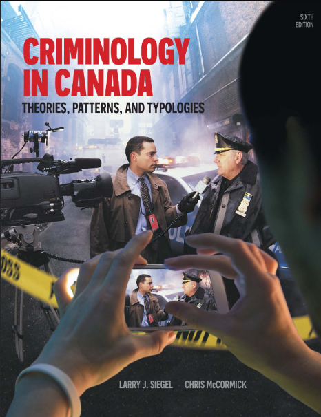 Criminology in Canada highlights the dynamism and diversity in the field of Criminology, making the field come alive to students. The experienced author team of Larry J. Siegel and Chris McCormick have provided a fair and unbiased introduction to criminological theory and criminal justice policy, providing the facts and tools needed to think critically about key issues in criminology. The text addresses the question of why we behave the way we do. What causes one person to become violent, while another channels his or her energy into work, school, and family? Is behaviour a function of personal characteristics, or of upbringing and experiences? Is it influenced by culture or environment, or is it a combination? The text uses a typology-based approach to discuss these difficult questions. Carefully structured to cover relevant material in a comprehensive, balanced, and objective fashion, the text is a favourite among students and teachers alike. Readers will find their learning experience is enhanced by many engaging study aids and engaging cases. Criminology in Canada, 6th edition has been completely updated to reflect the most recent evolution of crime theory, and to illustrate the dynamic nature of criminology through the inclusion of major research studies, Supreme Court rulings, and governmental policy.